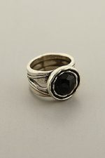 Hand made, sterling silver band with Onyx stone sets in a crown with a split band.