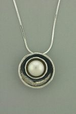 Hand made, sterling silver necklace with a White Pearl in a silver dome.