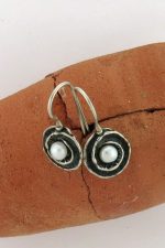 Sterling silver earrings, shiny and oxidized with White Pearls and French weirs finish.