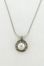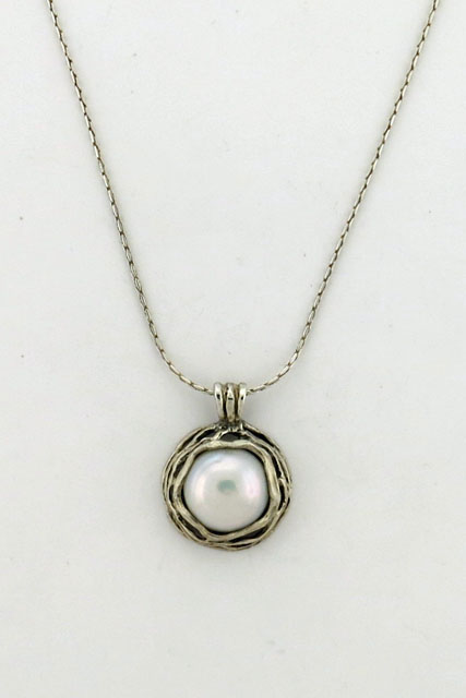 Sterling silver necklace with White Pearls mounted in sterling silver frame.