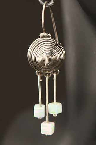 Hand made, sterling silver, contemporary earrings with White Opal stones.