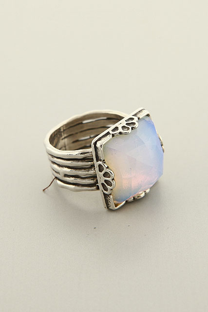 Hand made, sterling silver with Opalite stone on a multi rings band.