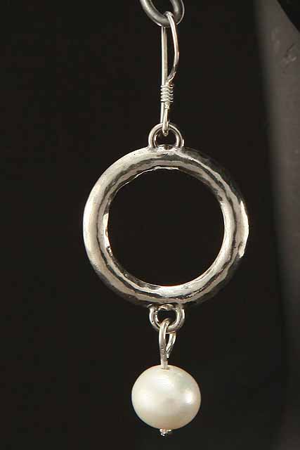Hand made, sterling silver, hanging earrings with White Pearl stones.