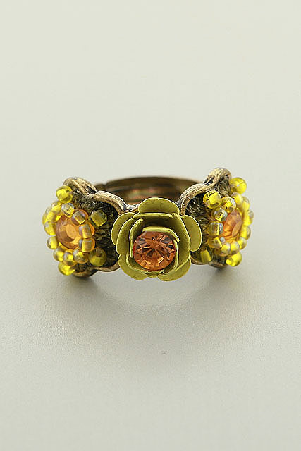 Hand made, Yellow fashion ring with Swarovski Crystals in Hypo Allergic metal from Michal Negrin Collection.