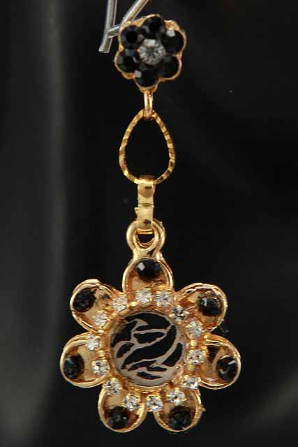 Fashion, gold plated dangling post earrings with black and white Swarovski Crystal stones.